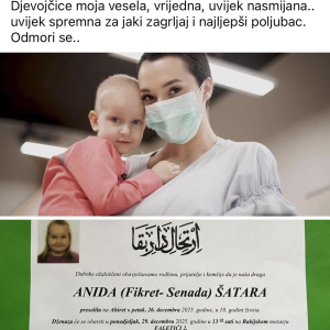 Potresna objava Nejre Musić nakon smrti djevojčice Anide Šatare rasplakala region