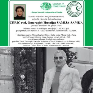 Nakon Hatidže Čolaković, u 71. godini preminula njena prijateljica Samija-Samka Cerić