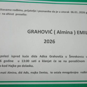 Veliku Kladušu zadesila je ogromna tuga nakon vijesti da je u 19. danu svog života na Ahiret preselio dječak Emil Grahović. Vijest o njegovoj preranoj smrti potresla…