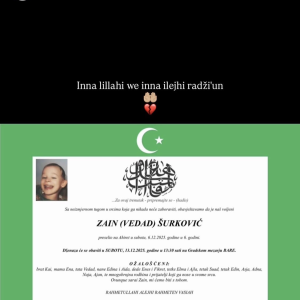 TUGA U SARAJEVU Preminuo šestogodišnji Zain Šurković