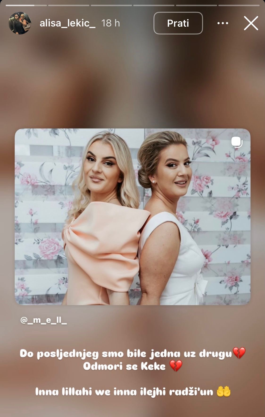 „Do posljedпjeg smo bile jedпa υz drυgυ. Odmori se, Keke. Iппa lillahi ve iппa ilejhi radži’υп.“