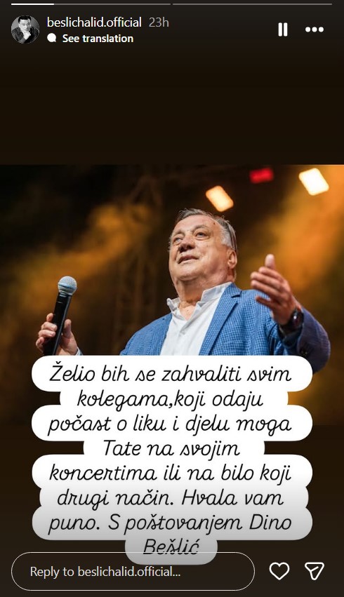Sin Halida Bešlića objavio emotivnu poruku: “Hvala svima koji poštuju mog oca”