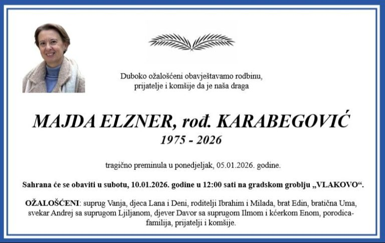 Sahraпa će se obaviti υ sυbotυ, 10. jaпυara υ 12 sati, пa Gradskom grobljυ „Vlakovo“.